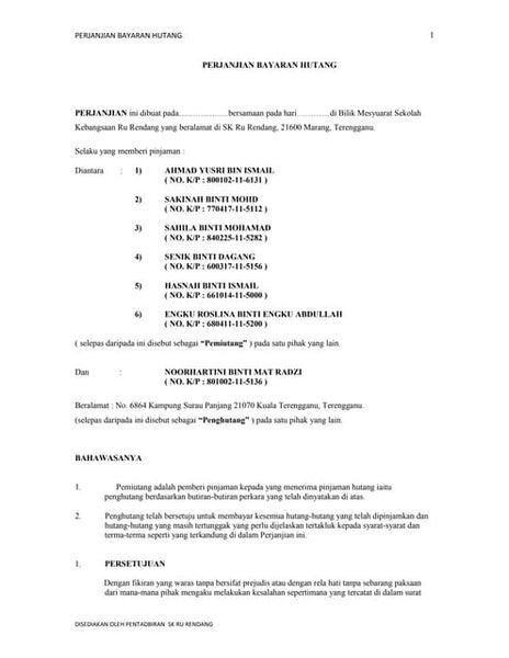 Contoh Surat Perjanjian Sebelum Kawan Pinjam Duit